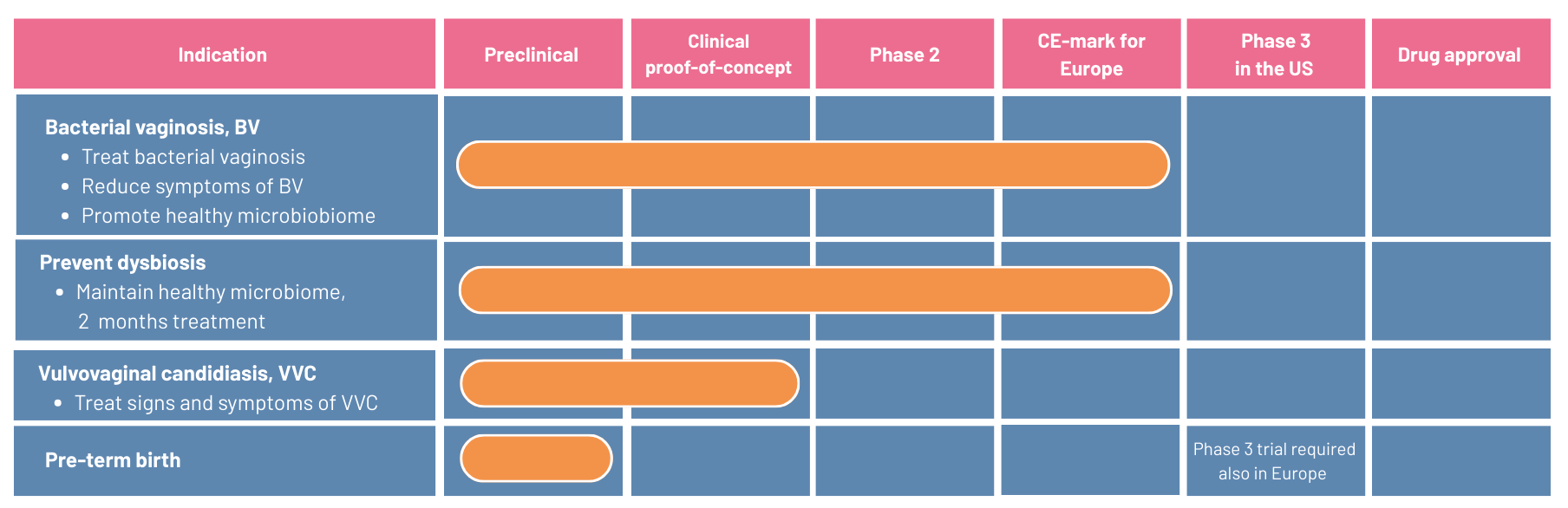In the pipeline, pHyph is developed for vulvovaginal candidiasis (vaginal fungal infections) and for prevention of pre-term birth.
